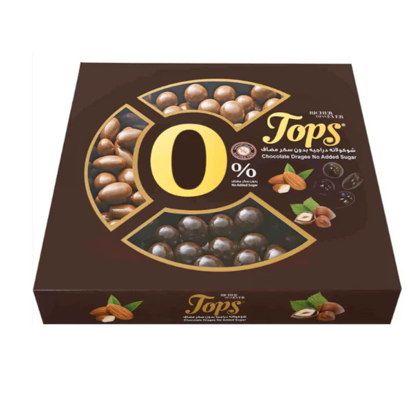 كمية توبس شوكليت علبة مشكله بندق ولوز بدون سكر مضاف خالية من الجلوتين 400جم