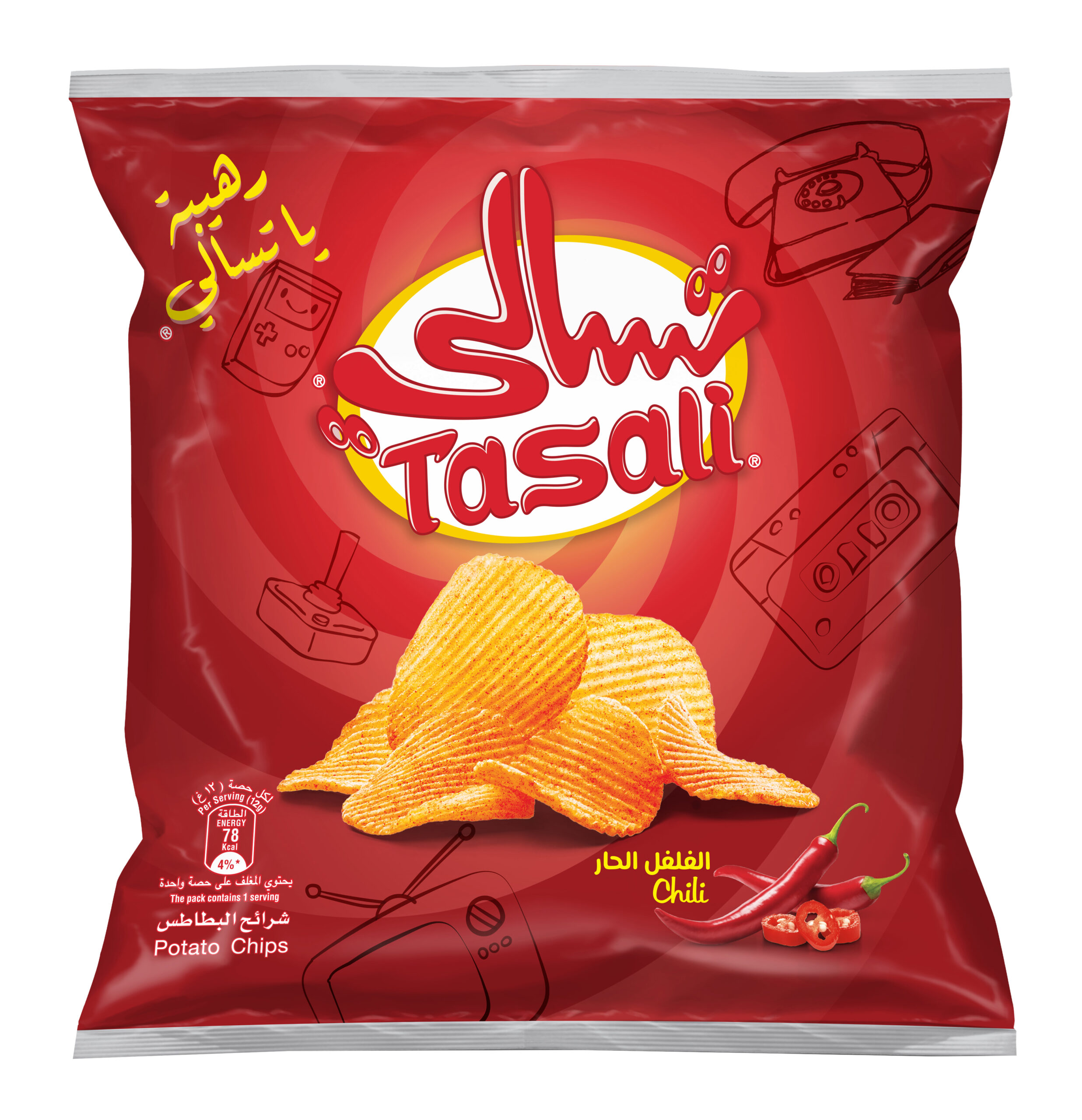 رقائق بطاطس تسالي بنكهة الفلفل الحار.