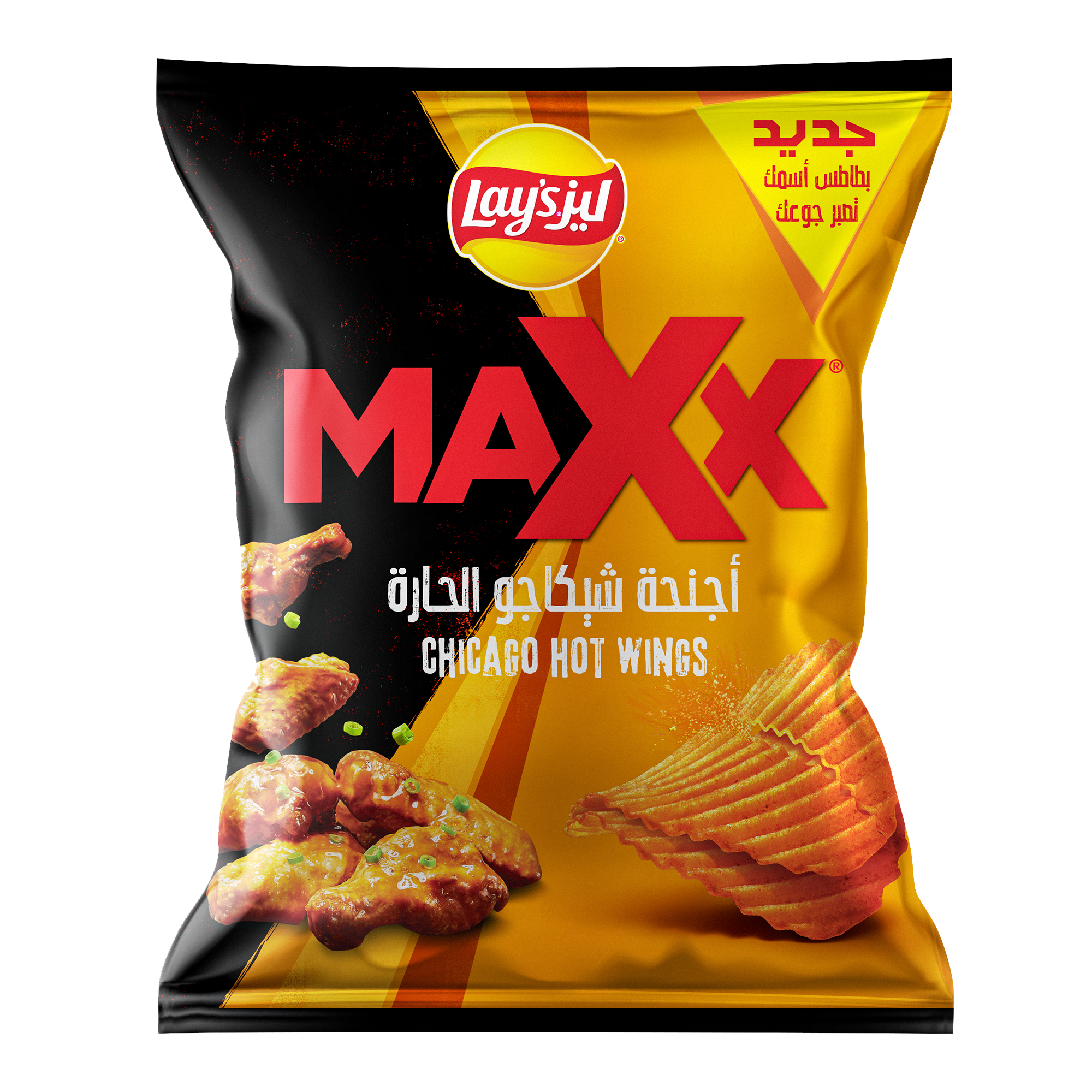 رقائق بطاطس ليز ماكس بنكهة أجنحة شيكاغو الحارة.