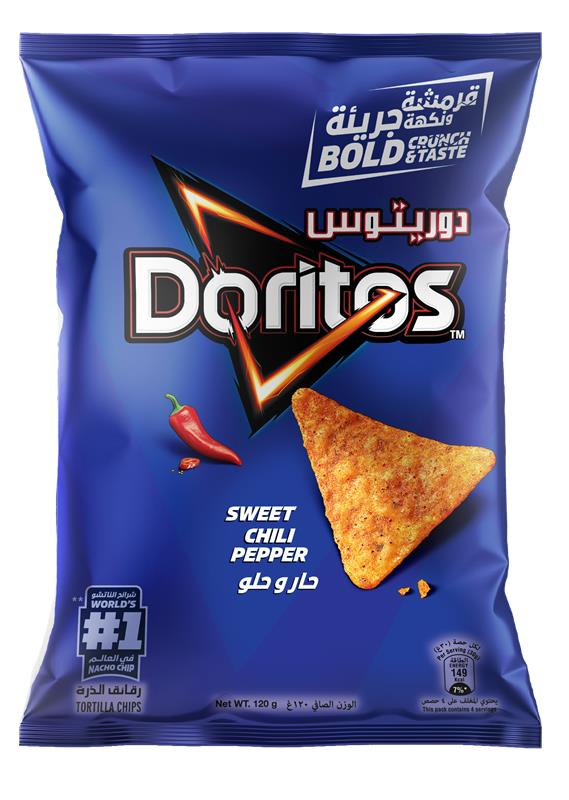 رقائق تورتيلا دوريتوس بنكهة الفلفل الحار الحلو.