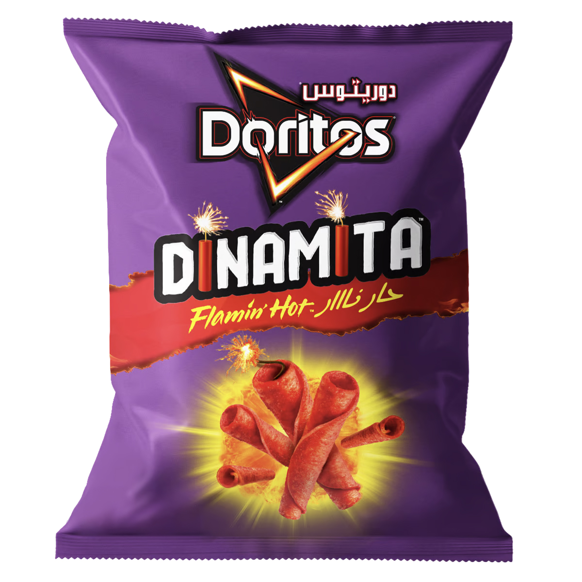 رقائق تورتيلا دوريتوس ديناميتا بنكهة فلامين هوت (Flamin’ Hot).