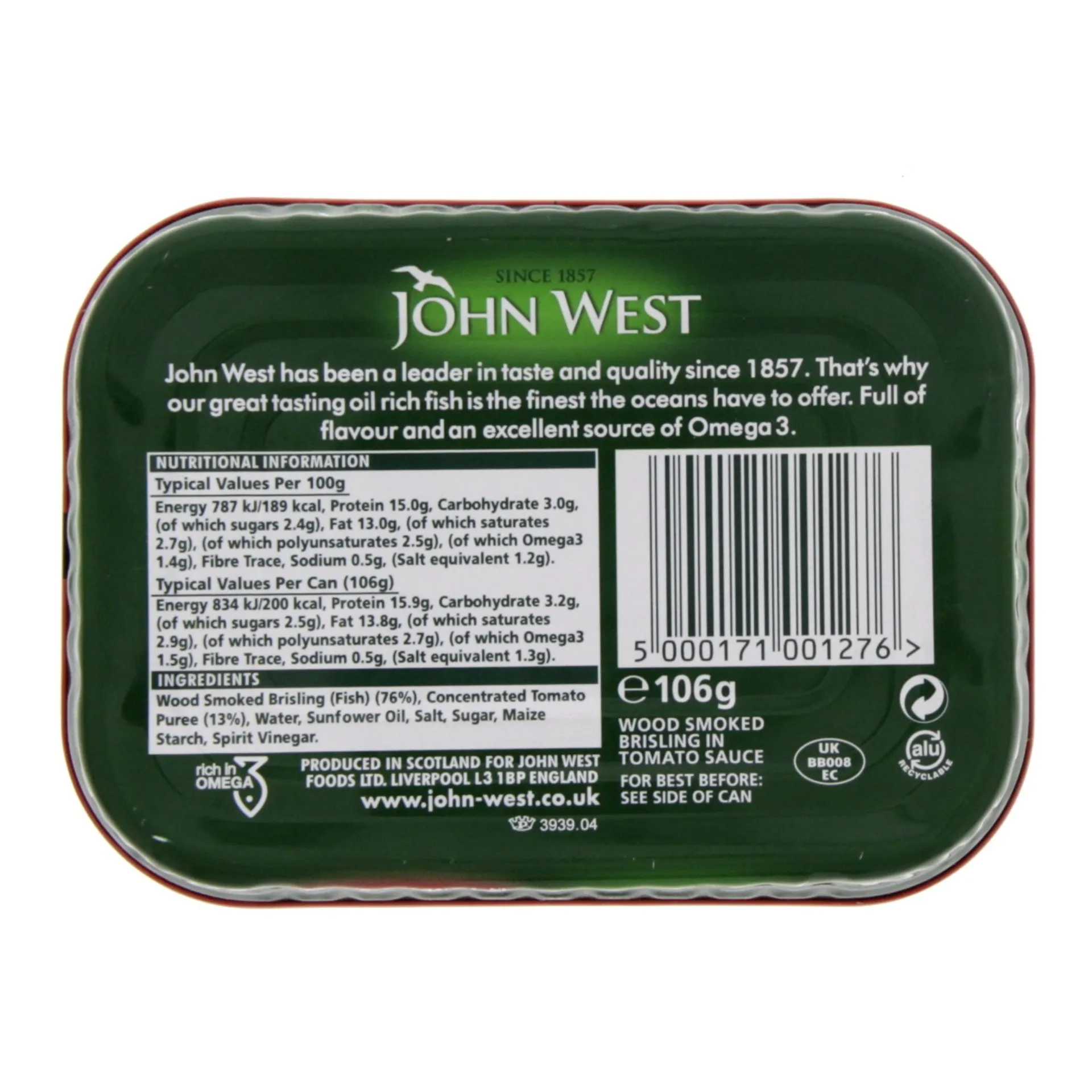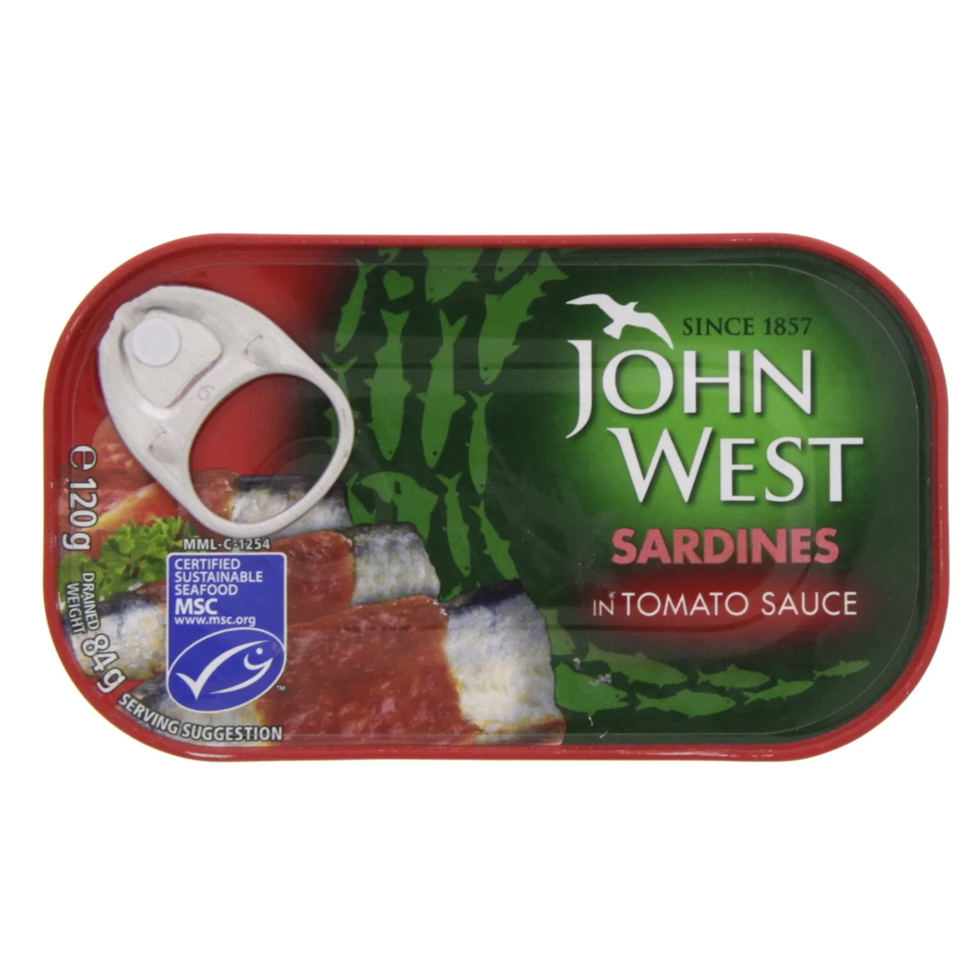 سردين جون ويست صلصة الطماطم 120 غرام