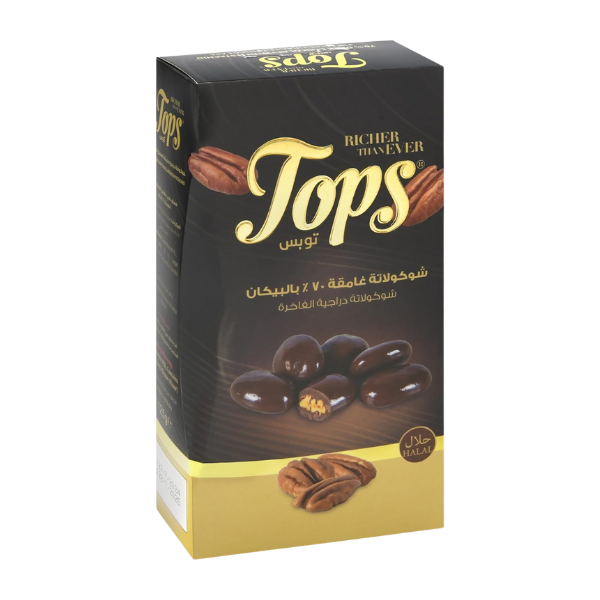 / شوكولاتة دراجية داكنة 70% بالبيكان من توبس، كاكاو 125 جرامًا